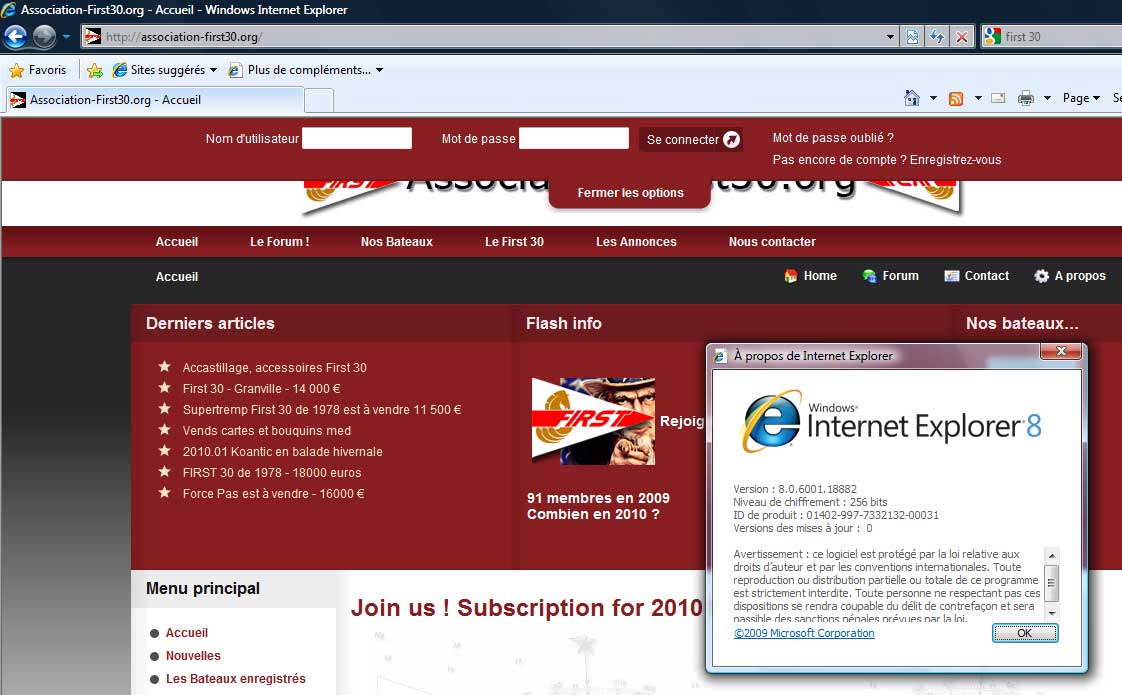 Après avoir bien bavé sur IEx voici une copie d'écran sous IE8.