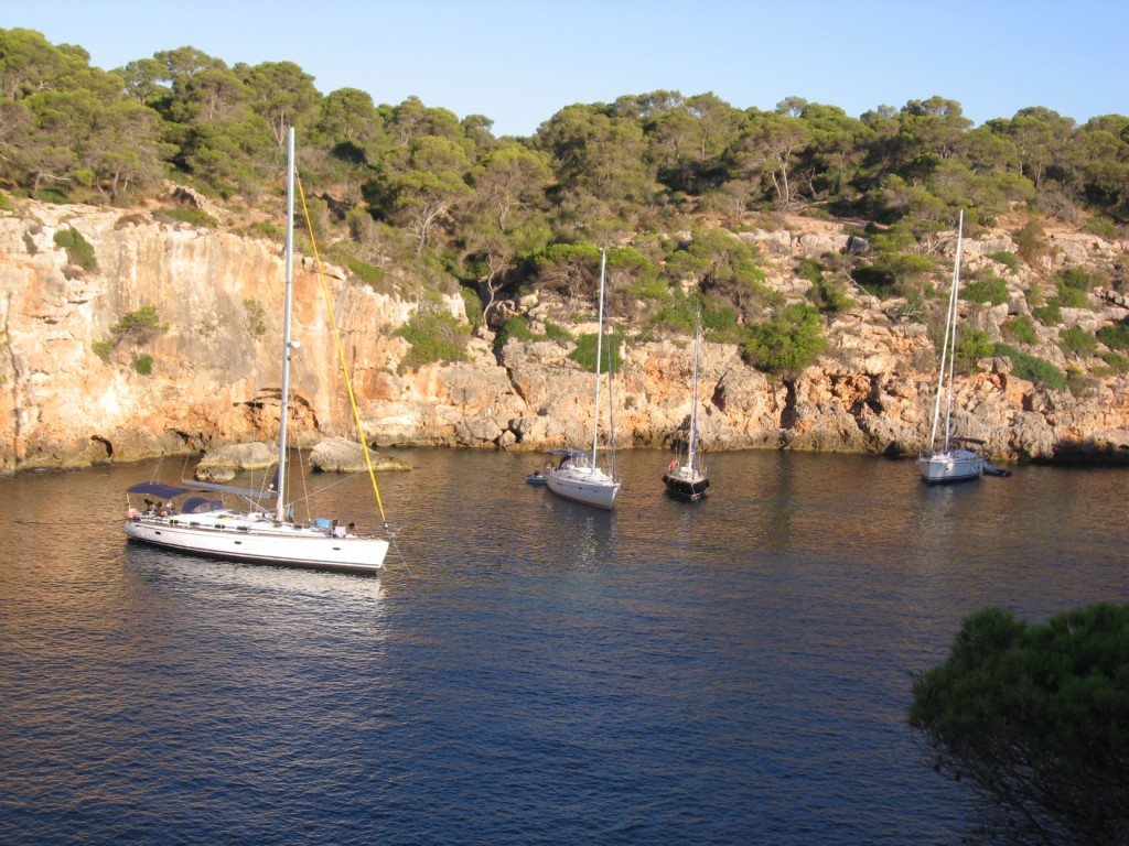 Au mouillage d'En-vau, les araignées humaines surplombent les bateaux...