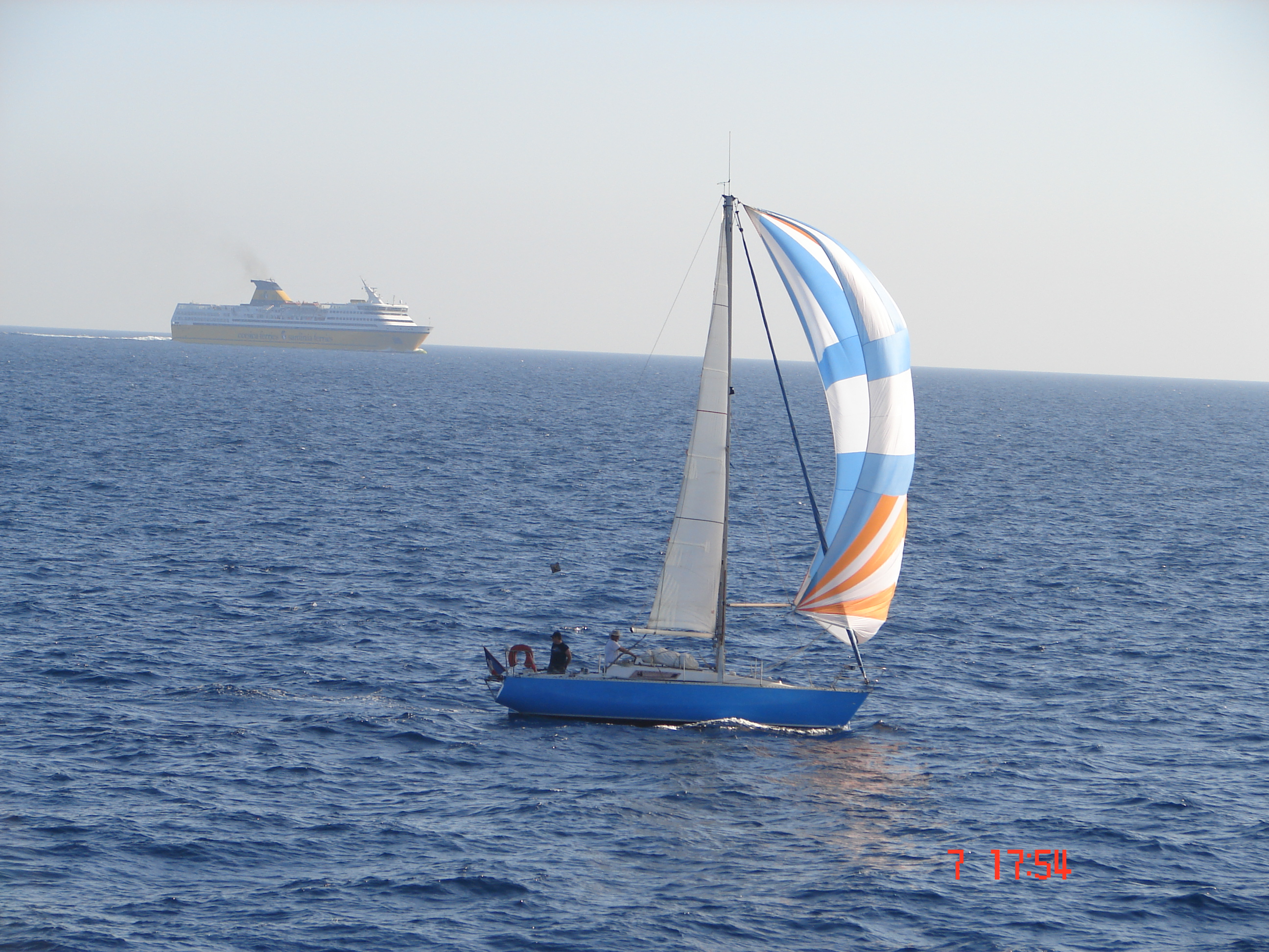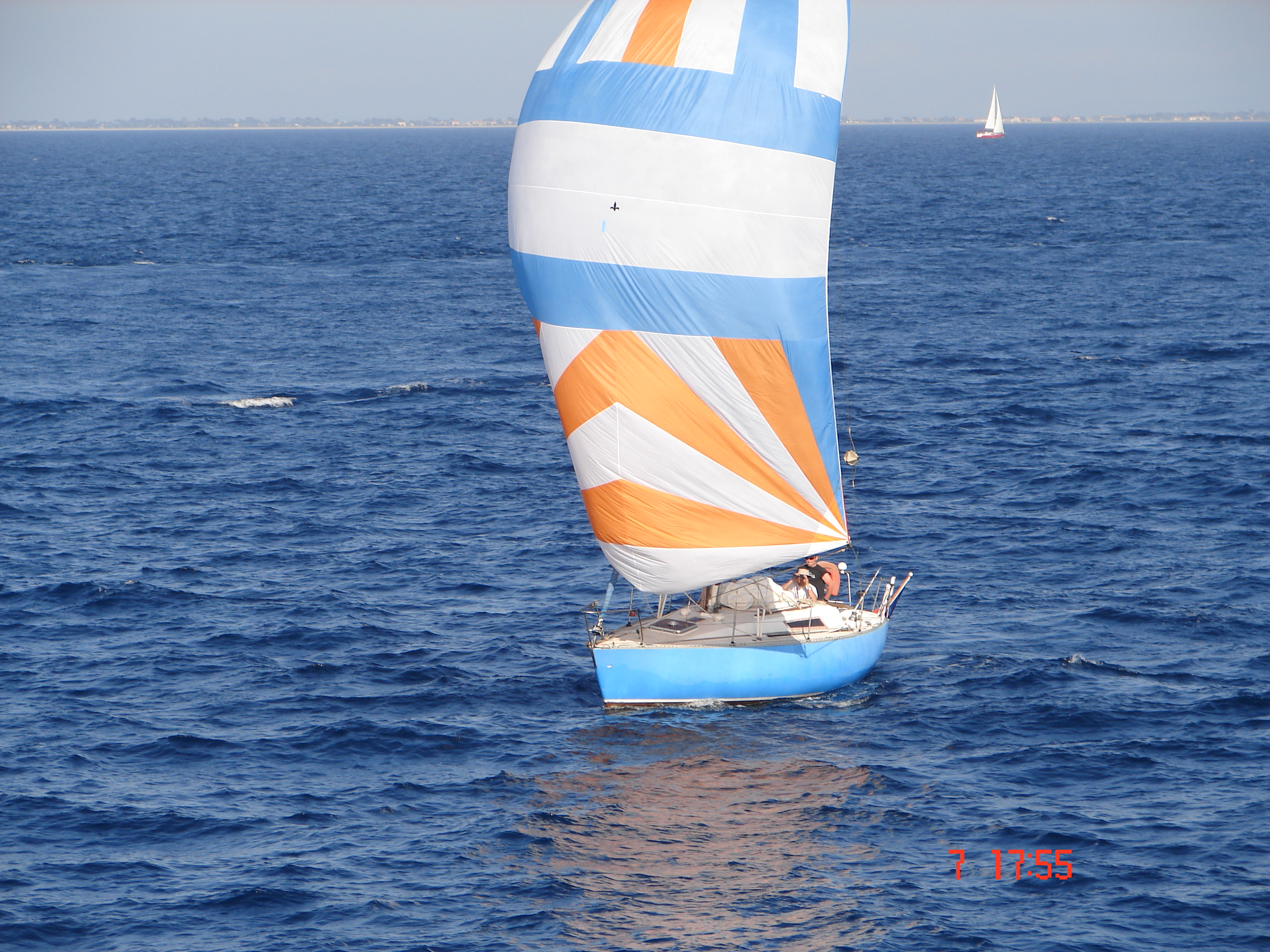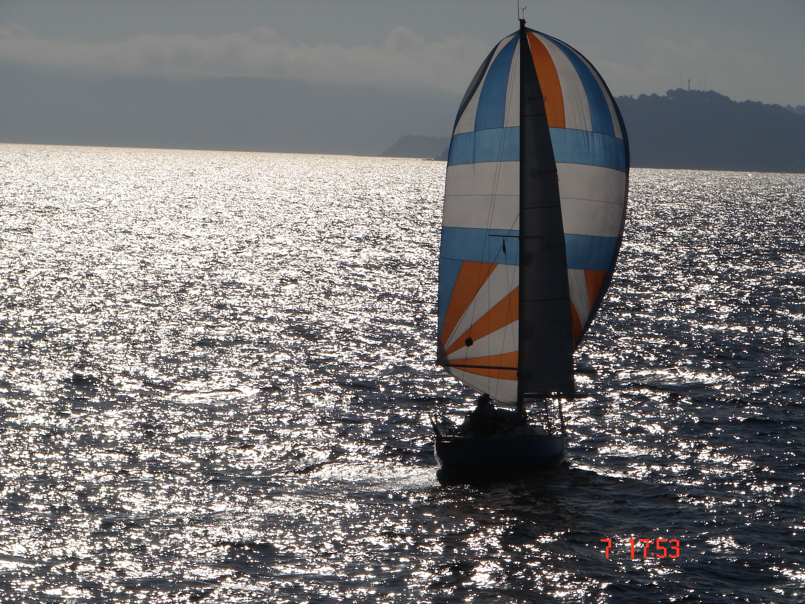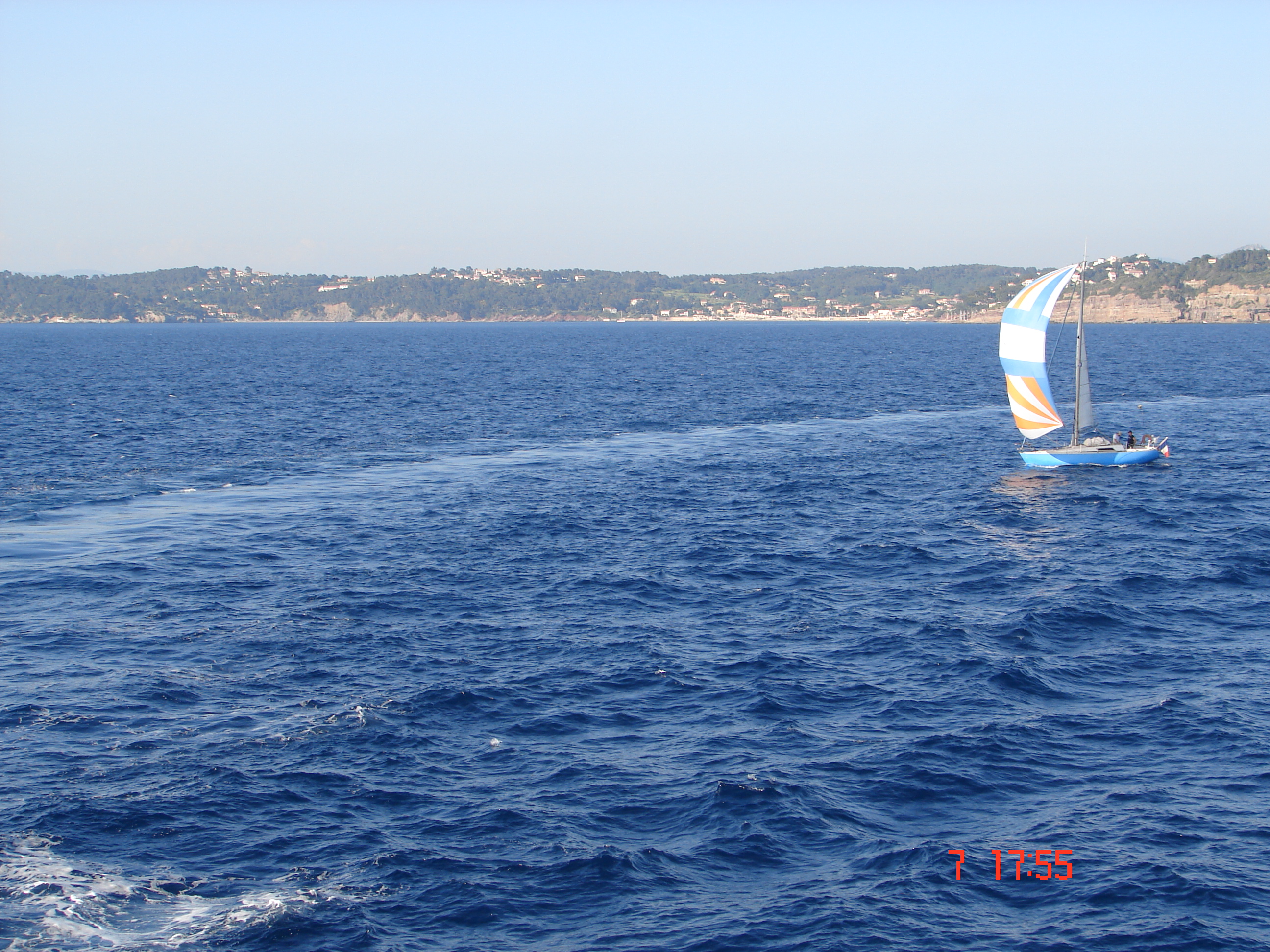 Voici quelques photos de mon venerable first 30 le "Zeph" prise par un de mes amis depuis un bateau beaucoup plus gros et beaucoup plus "gris" alors que nous étions de retour de Porquerolles avec une cargaison d 'une dizaine de cartons de l’excellent vin de cet île (qui depuis a bien sur été consommé avec modération :c) :c) :c) )