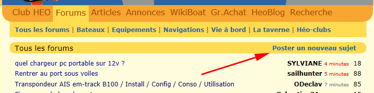 Chez nous. On le trouve en tête de toutes les rubriques. Notre forum est classé par rubriques. Ce n'est pas un papier qui se déroule au fil de l'eau comme sur H&O ou sur STW
