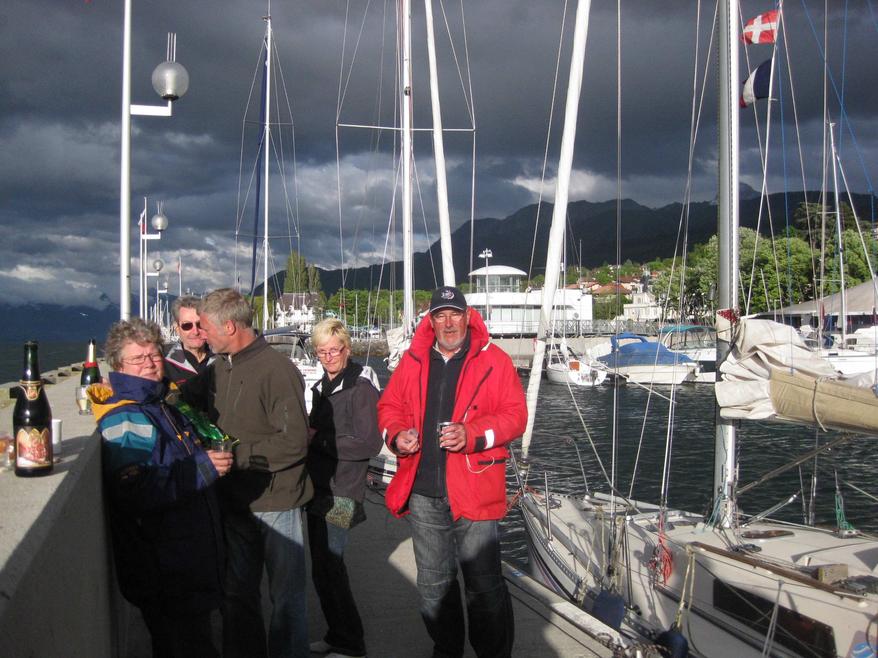 Comme qui dirait: de deux choses l'une... soit ce week-end on restait chez soi tétanisé devant l'image météo, soit on prenait son courage à 2 ris et on voguait joyeusement vers le rassemblement ! Celui qui a opté pour le rassemblement a eu droit à une météo au final meilleure qu'annoncée, une température "pas si mal pour un mois de janvier", des vents capricieux, des grains bretons, de la bière belge, du crémant d'Alsace, du blanc vaudois, des histoires de panthères et de petites princesses, et surtout la constatation, telle que l'a fit notre ami Ch'ti, que sur le Léman, tout est différent !!