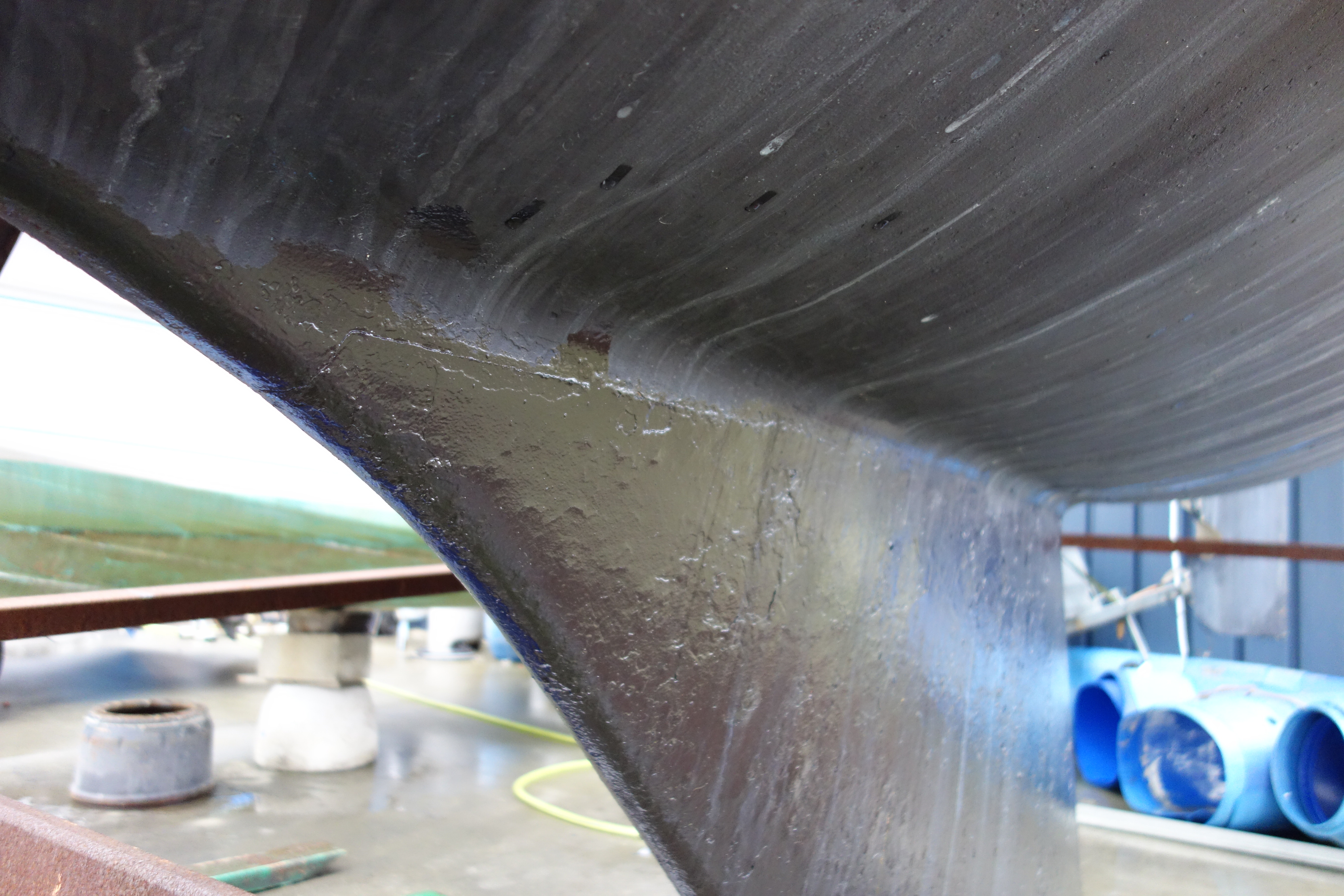 -Tube d'étambot d'origine (mais bagues hydrolube changées 2006). 2) La chaise de ligne d'arbre me semble propre ( pas d'attaque électrolytique); 3) je ne crois pas avoir vu de délaminage sur le bord d'attaque du Safran : -Joint de quille me semble bon... non? -Gréement : mat + bôme Isomat d'origine, enrouleur Profurl C320 de 2015. Soudures tétons barre de flèches RAS