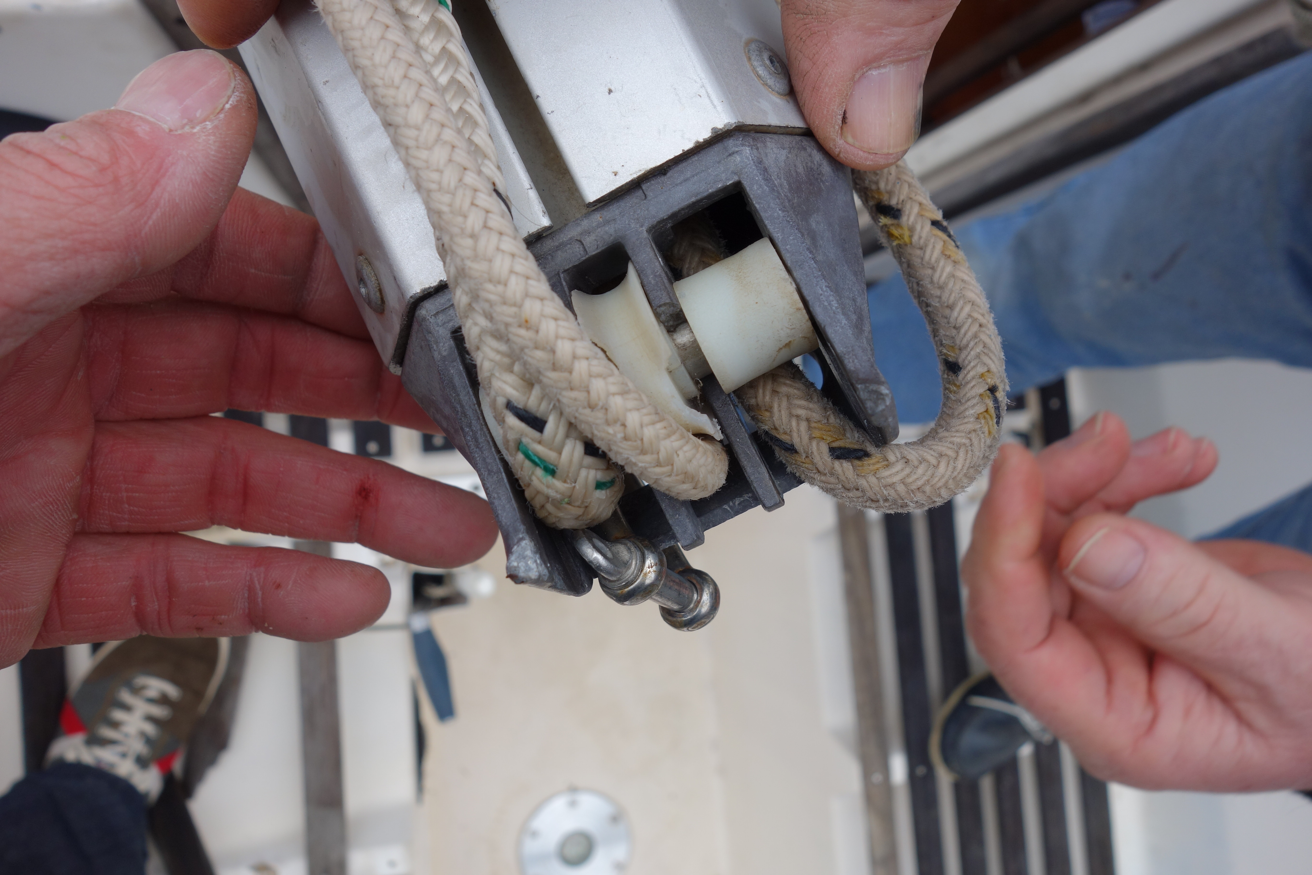Deux inquiétudes : 1) les 2 demies-coques plastique du vis de Muletsemblent sérieusement usées... 2)réas bout de bôme cassés...