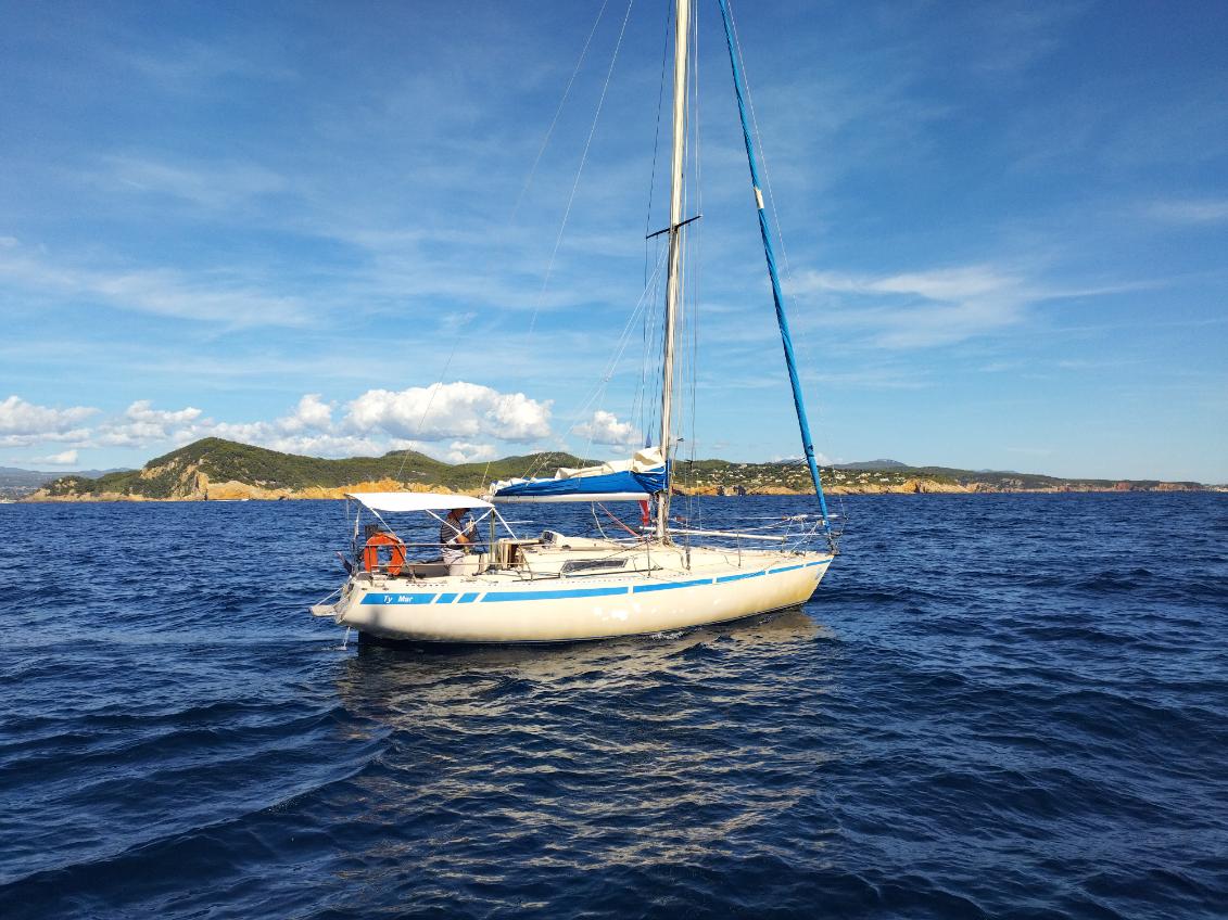 Rencontre de Mathias sur son Barracuda, basé aux Embiez, il allait à la Ciotat. Il n’a pas pu nous rejoindre samedi, le vent de face bien trop fort.