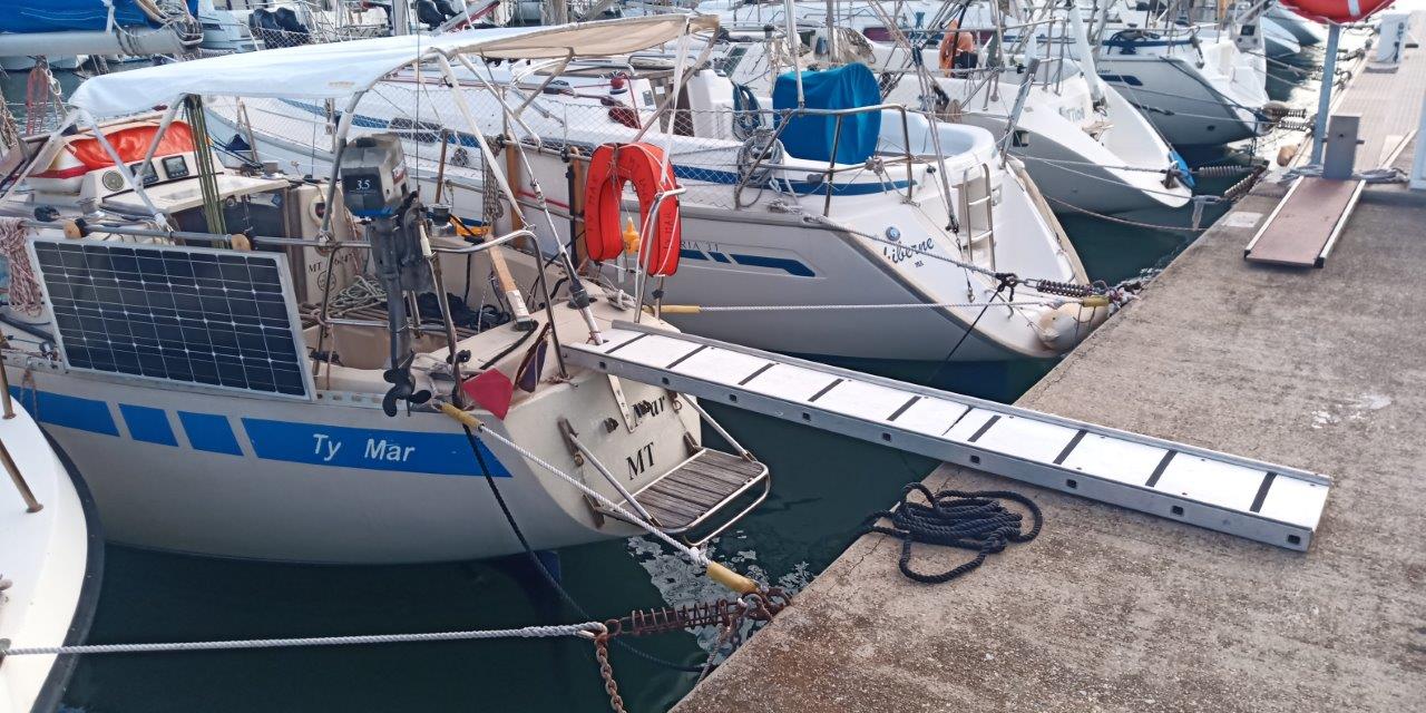 Le ponton d’accueil est très grand, soumis à la houle des bateaux de passage, côté chenal. On y prend tous de la place.