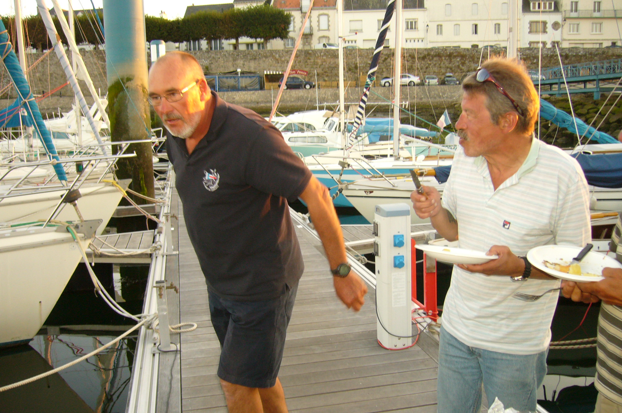 Ce jour là, Michel avait pêché une dizaine de maquereaux qui furent le prétexte d'un banquet sur ponton à Port-Louis :