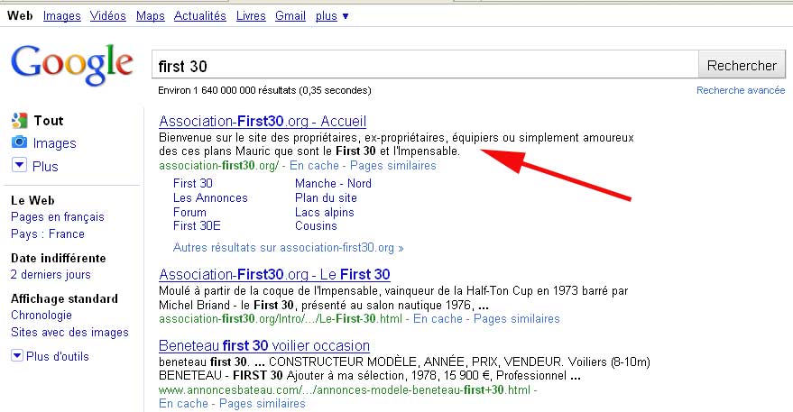 Il y a eu du changement dans le référencement Google, un nouveau texte ( à la place de "First30, Bénéteau, Bénéteau First 30 etc"...)
