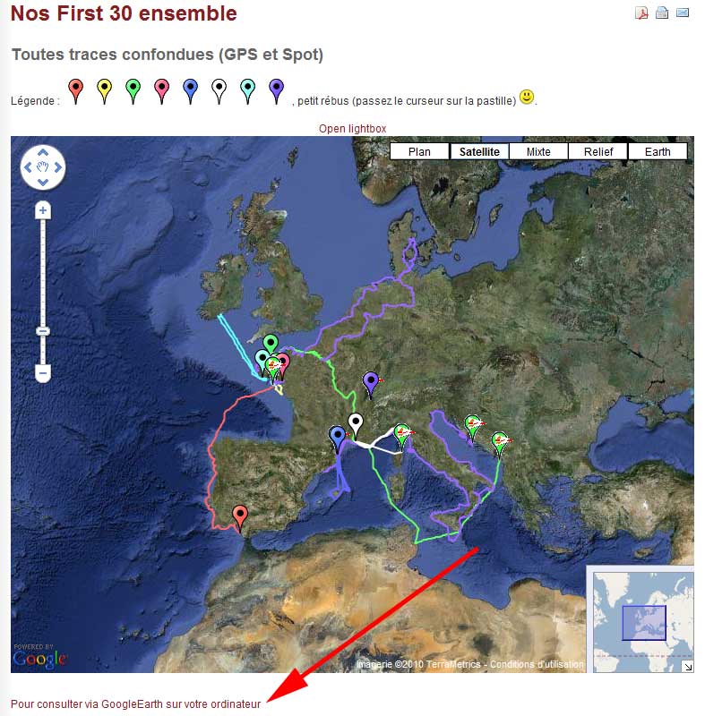 Je fais quelques ajustements sur l'affichage de la trace spot (nouvelle possibilité de récupérer directement un fichier.kml pour import dans GoogleEarth)