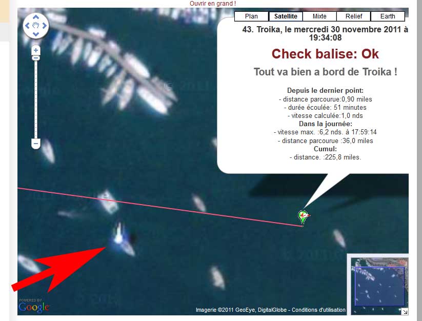 Je m'amusais à regarder la position de Troïka à son denier mouillage et voilà ce que j'ai vu :