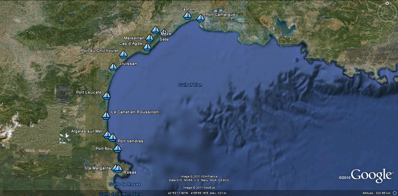 Les deux vues Google Earth de la zone Lion montrant les ports où sont présents des First 30 ont été utilisées pour l'appel au rassemblement Lion 2011...