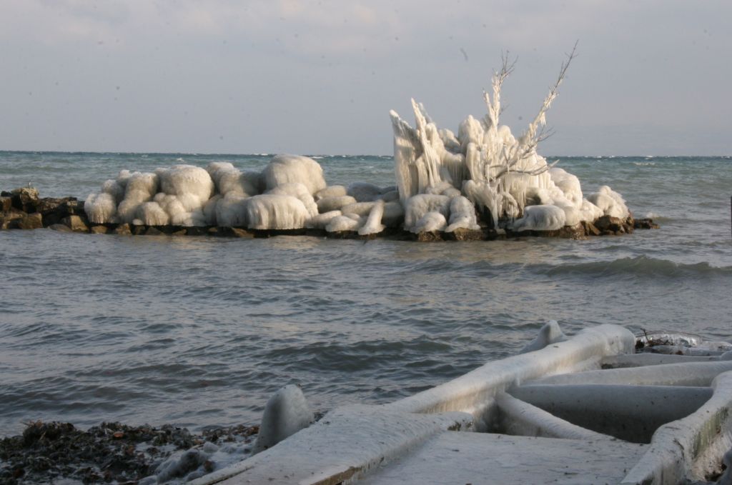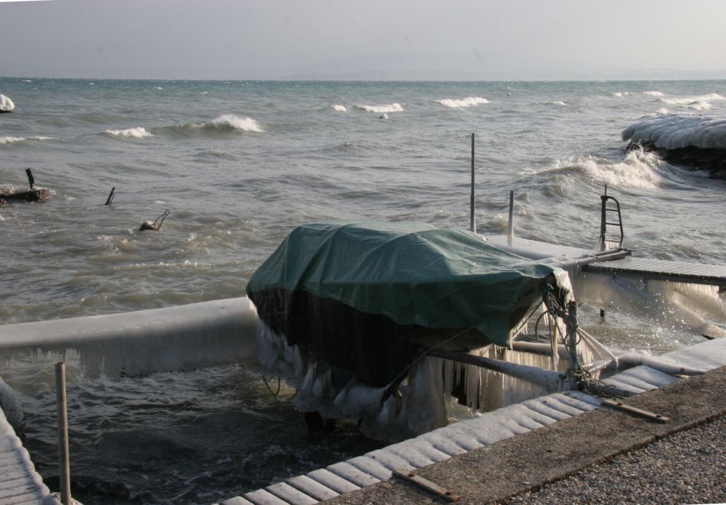 Apres avoir vu une photo de bateau et voiture gelé autour du leman dans un journal,j'ai de suite appellé un ami qui habite au dessus du port,il m'a confirmé qu'il y a pas grand chose sur le bateau.Meillerie (au nord du lac) est un port assez protegé.