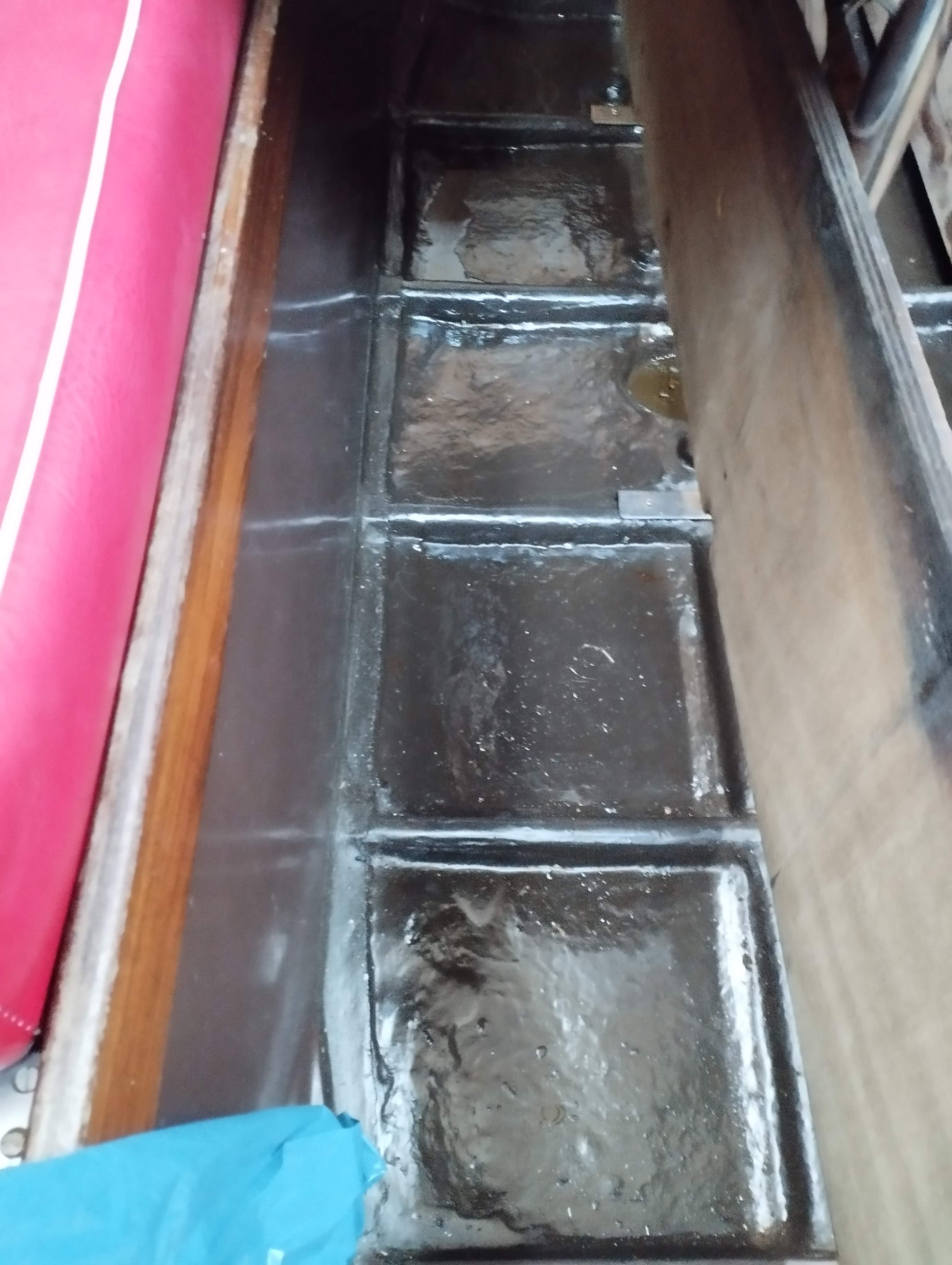 Le moteur est un Yanmar 2GM, refait intégralement il y a 5 ans et entretenu par professionel tous les ans depuis. Bon, le jour de ma visite il a eu du mal à démarrer mais il faisait bien froid...