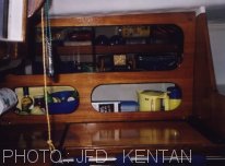 | Pour un bateau initialement destiné à la course-croisière, outre une table à carte très fonctionnelle, le First 30 dispose d'un package d'éléments de confort très suffisant : lavabo, WC marin, mini cuisine (avec équipets, évier, réchaud et glacière),... tout ce qu'il faut pour naviguer agréablement, quel que soit le programme. |