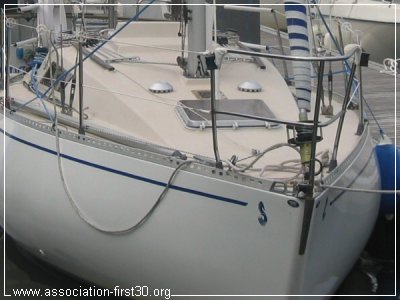 Particularité d'@robaz : un spi asymétrique frappé sur un bout dehors amovible, un vaigrage neuf, des vernis rutilants et un inter neuf.