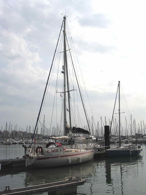 Longtemps mouillé à Foleux sous le nom de Kigwen, on recontrera ce First 30, rebaptisé Shanza entre Brest et La Rochelle. Vous aurez peut-être la chance de voir son spi asymétrique librement inspiré du Bolo de Claire Bretécher.