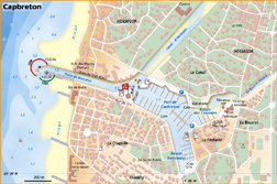 Situation 43°39,4’ N - 01°26,8’ W Ports proches : Royan 121 M, Arcachon 69 M, Anglet 8 M. Cartes SHOM 6557 (1/49 600), 6586 (1/10 000), 6786 (1/130 000). Navicarte 10. Accueil Bureau du port, Quai Georges Pompidou 40130 Capbreton; tél. 05 58 72 21 23, VHF 9 (7h-21h en saison, 8h-19h hors saison). Maître de port : Mr Fleury. Les visiteurs sont reçus aux pontons B et H. Le tirant dÂ’eau est limité à 2,40 m. |