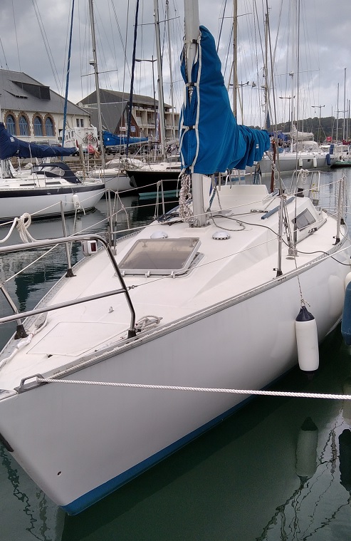 Esperendza appartient à Adrien qui l'a acheté en 2019 (et qui lui a maintenu une garde robe "old school" : Foc n°1, n°2, génois et tourmentin, en sus, bien sûr, de Grand Voile et spi