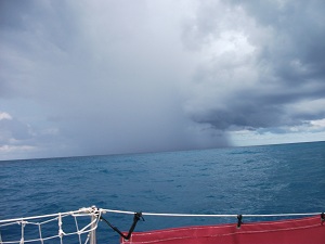 La météo a été clémente mis à part au début avec quelques grains et à la fin avec quelques renforcement musclés (35 nœuds) en fin de journée de la brise de NW. Le scénario en Grèce était globalement assez immuable : grand soleil, très chaud (on frôle les 38° à midi dans la cabine), un peu de vent du sud le matin et renforcissement graduel l’après-midi avec rotation au Nord.