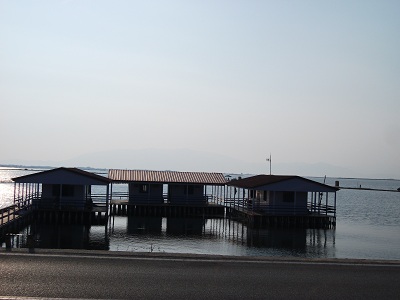 Bien abrité (sauf, j'imagine, par vent de Sud Ouest) dans un décor très étrange : mélange de marais, de hautes collines, sur fond d'anciennes iles volcaniques et de maisons sur pilotis.